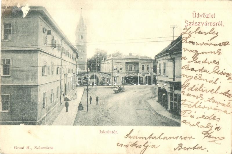 1901 Szászváros, Broos, Orastie; Iskola tér, gyógyszertár / school squ... https://www.darabanth.com/hu/327-Gyorsarveres/327.0/Kepeslapok/Erdely~1000007/1901-Szaszvaros-Broos-Orastie-Iskola-ter-gyogyszertar-school-square-pharmacy-EK~II1821822