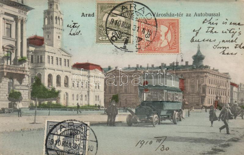 1910 Arad, Városház tér, autóbusz. Bloch H. kiadása / town hall square... https://www.darabanth.com/hu/327-Gyorsarveres/327.0/Kepeslapok/Erdely~1000007/1910-Arad-Varoshaz-ter-autobusz-Bloch-H-kiadasa-town-hall-square-autobus-TCV-card~II871307