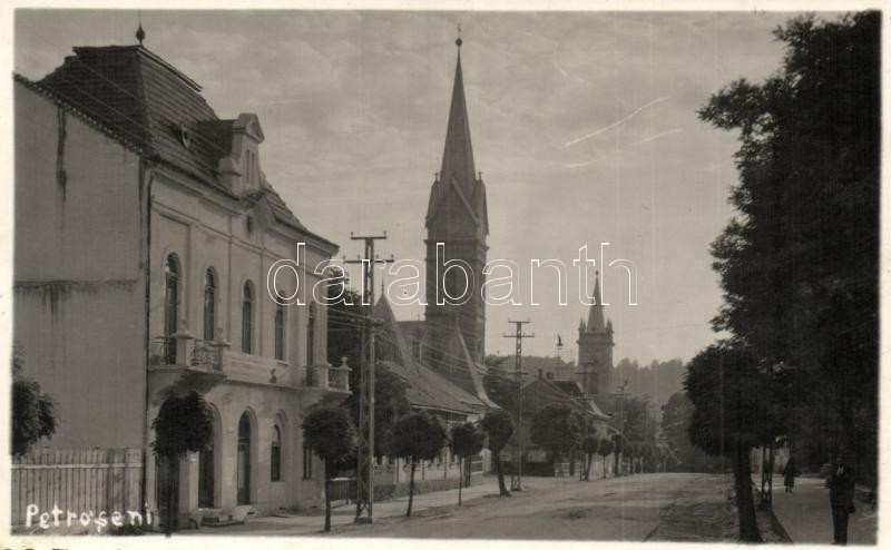 Leírás: Petrozsény, Petrosani; utcakép, templomok / street view with churches. photo
