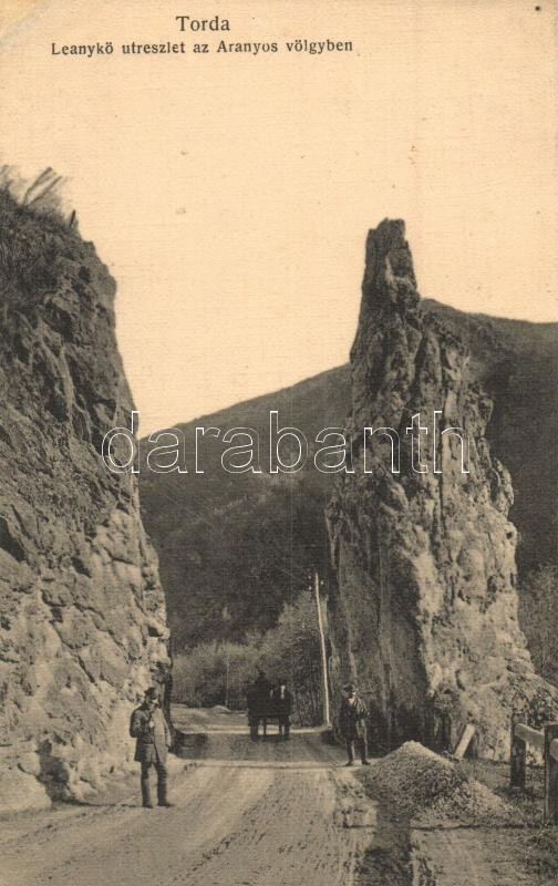 Torda, Turda; Leánykő út az Aranyos völgyben / valley road (EK) https://www.darabanth.com/hu/327-Gyorsarveres/327.0/Kepeslapok/Erdely~1000007/Torda-Turda-Leanyko-ut-az-Aranyos-volgyben-valley-road-EK~II1822905