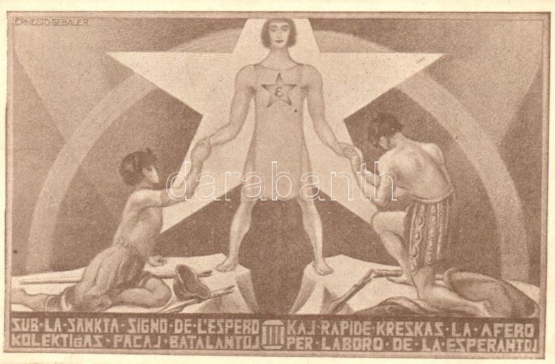 La Espero de L.L. Zamenhof / Esperanto art postcard s: Ernesto Gebauer https://www.darabanth.com/hu/327-Gyorsarveres/327.0/Kepeslapok/Eszperanto~1000054/La-Espero-de-LL-Zamenhof-Esperanto-art-postcard-s-Ernesto-Gebauer~II1824499