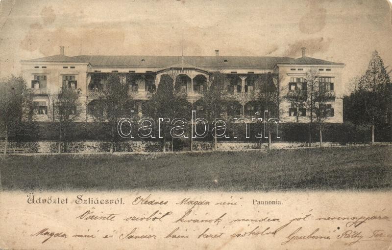 1904 Szliács, Sliac; Pannónia szálló / hotel (EK) https://www.darabanth.com/hu/327-Gyorsarveres/327.0/Kepeslapok/Felvidek~1000008/1904-Szliacs-Sliac-Pannonia-szallo-hotel-EK~II1824602