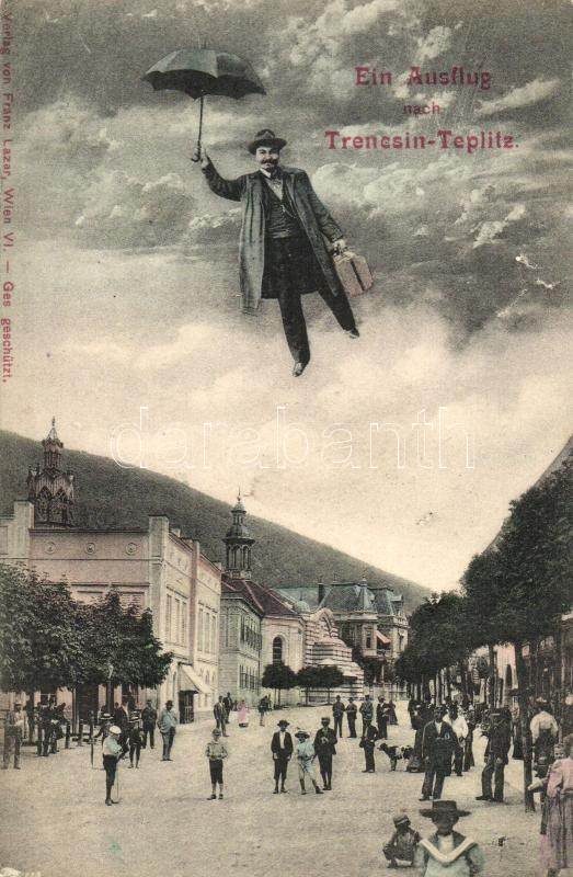 1905 Trencsénteplic, Trencianske Teplice; Repülő úriember esernyővel /... https://www.darabanth.com/hu/327-Gyorsarveres/327.0/Kepeslapok/Felvidek~1000008/1905-Trencsenteplic-Trencianske-Teplice-Repulo-uriember-esernyovel-Ein-Ausflug-nach-Trencsi~II935065