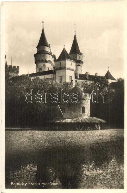 Leírás: 1937 Bajmóc, Bojnice; Gróf Pálffy várkastély a tóval / Bojnicky Zámok s rybníkom / castle with pond