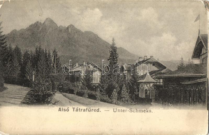 Alsótátrafüred, Bad Schmecks, Unterschmecks, Dolny Smokovec (Magas Tát... https://www.darabanth.com/hu/327-Gyorsarveres/327.0/Kepeslapok/Felvidek~1000008/Alsotatrafured-Bad-Schmecks-Unterschmecks-Dolny-Smokovec-Magas-Tatra-Latkep-villak-sC3~II1822497
