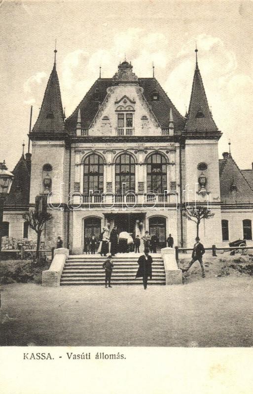 Kassa, Kosice; Vasútállomás. Jaschkó Géza kiadása / railway station https://www.darabanth.com/hu/327-Gyorsarveres/327.0/Kepeslapok/Felvidek~1000008/Kassa-Kosice-Vasutallomas-Jaschko-Geza-kiadasa-railway-station~II1676053
