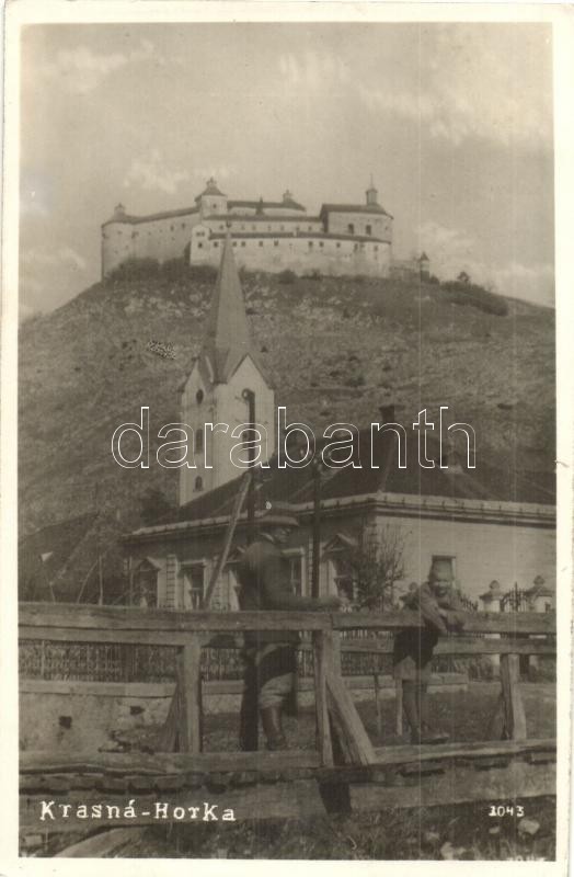 Leírás: Krasznahorkaváralja, Krásnohorské Podhradie; Vár, templom / castle, church, "Rozsnyó visszatért " So. Stpl.