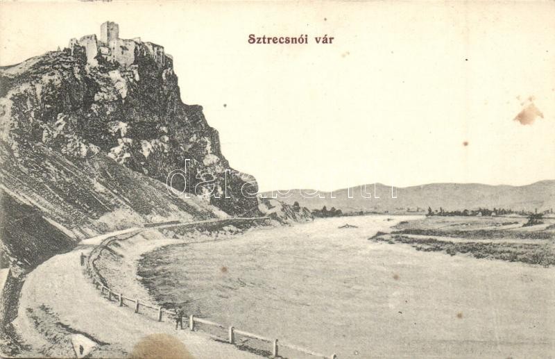 Sztrecsnó, Sztrecsény, Strecno (Tátra); Vár romladék a Vágnál. Kiadja Löwy Fülöp 88. / Burgruine Strecsno a.d. Waag / castle ruins by River Váh, Povazie