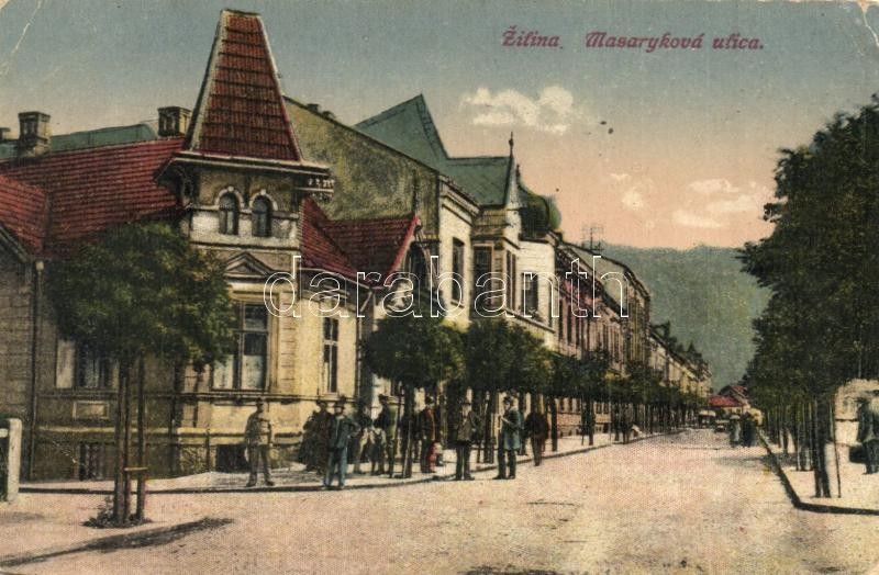 Zsolna, Sillein, Zilina; Masarykova ulica / Masaryk utca. J. M. Hradil... https://www.darabanth.com/hu/327-Gyorsarveres/327.0/Kepeslapok/Felvidek~1000008/Zsolna-Sillein-Zilina-Masarykova-ulica-Masaryk-utca-J-M-Hradil-kiadasa-street-view-EB~II1821927