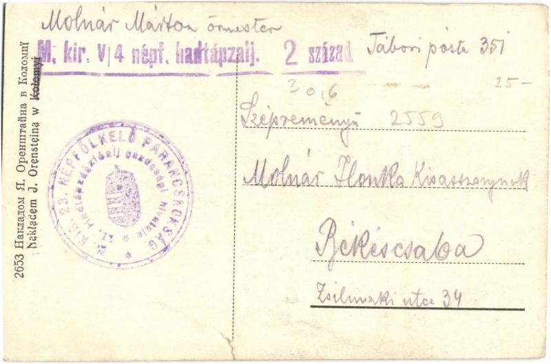 Carpathian Hucul (Hutsul) Ukrainian folklore from Burkut. J. Orenstein, Kolomyia + M. kir. V/4. népf. hadtápzalj. 2. század M. kir. 23. népfölkelő parancsnokság II. Hadtápzászlóalj gazdasági hivatala (szakadás / tear)