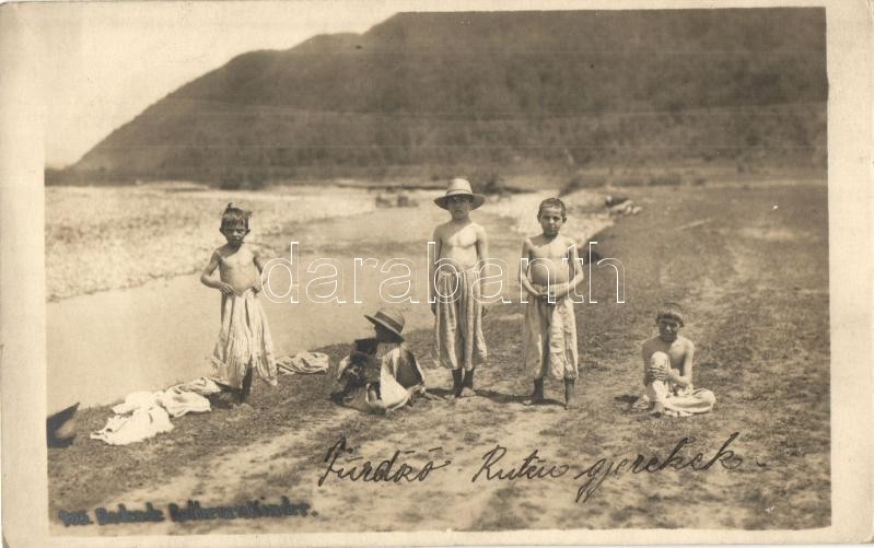 Fürdőző rutén (ruszin) gyerekek / Ruthenian children by the river, fol... https://www.darabanth.com/hu/327-Gyorsarveres/327.0/Kepeslapok/Folklor~1000055/Furdozo-ruten-ruszin-gyerekek-Ruthenian-children-by-the-river-folklore-photo-non-PC~II1819023