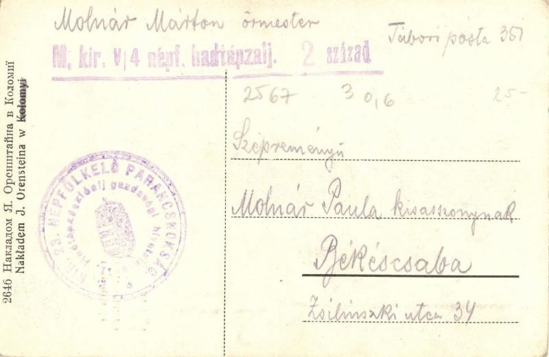 Wiesniaczka z Sniatynskiego / Carpathian Hucul (Hutsul) Ukrainian folklore from Sniatyn. J. Orenstein, Kolomyia + M. kir. V/4. népf. hadtápzalj. 2. század M. kir. 23. népfölkelő parancsnokság II. Hadtápzászlóalj gazdasági hivatala (EK)