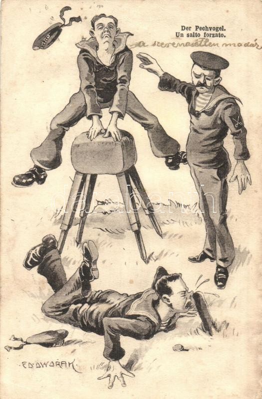 Der Pechvogel / Un salto forzato / K.u.K. Kriegsmarine mariner humour ... https://www.darabanth.com/hu/327-Gyorsarveres/327.0/Kepeslapok/Hadihajo~1000057/Der-Pechvogel-Un-salto-forzato-KuK-Kriegsmarine-mariner-humour-art-postcard-C-Fano-191213~II1821428