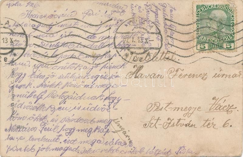 Leírás: Der Pechvogel / Un salto forzato / K.u.K. Kriegsmarine mariner humour art postcard. C. Fano 1912/13. 5858. s: Ed. Dworak (EK)