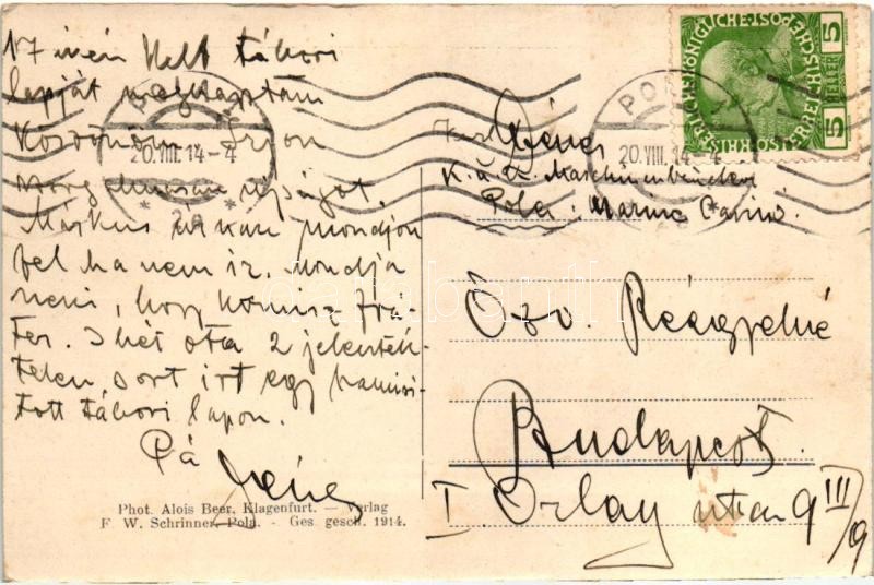 Leírás: SMS Viribus Unitis, K.u.K. haditengerészet Tegetthoff-osztályú dreadnought csatahajója / SMS Viribus Unitis, Austro-Hungarian Navy, K.u.K. Kriegsmarine Tegetthoff-class dreadnought battleship. Phot. Alois Beer, Verlag F. W. Schrinner Pola (EK)