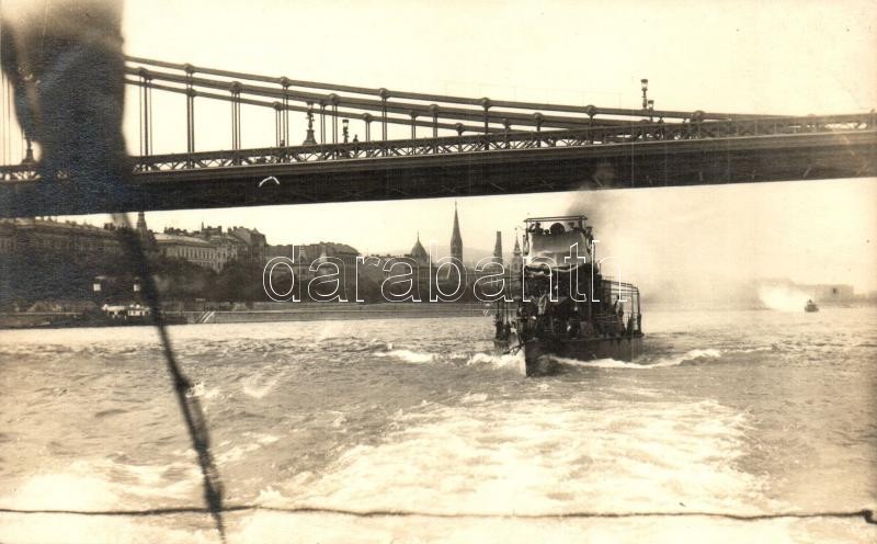 Szeged őrnaszád (monitorhajó) a budapesti Lánchíd alatt. Dunai Flottilla / Donau-Flottille / Hungarian Danube Fleet river guard ship in Budapest. Emke photo