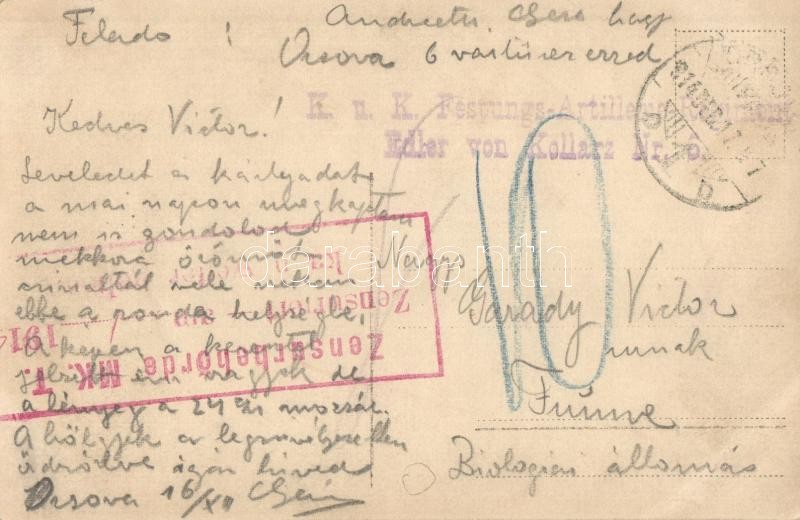 1914 Osztrák-magyar 6. vártüzér ezred katonái egy 24-es mozsárágyú mellett Orsován / WWI Austro-Hungarian K.u.K. artillery soldiers next to a 24 cm mortar (Mörser cannon) in Orsova. photo + K.u.K. Festungs-Artillerie-Regiment Edler von Kollarz Nr. 6. (EK)