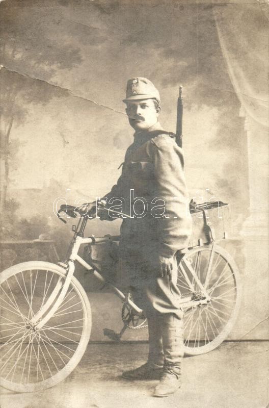 Első világháborús osztrák-magyar kerékpáros katona / WWI K.u.k. milita... https://www.darabanth.com/hu/327-Gyorsarveres/327.0/Kepeslapok/Katonai~1000065/Elso-vilaghaborus-osztrak-magyar-kerekparos-katona-WWI-Kuk-military-soldier-with-bicycl~II1821459