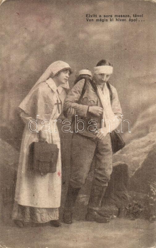 "Elvitt a sors messze, távol van mégis ki híven ápol" / WWI ... https://www.darabanth.com/hu/327-Gyorsarveres/327.0/Kepeslapok/Katonai~1000065/Elvitt-a-sors-messze-tavol-van-megis-ki-hiven-apol-WWI-Austro-Hungarian-Army-injured-soldi~II1819192