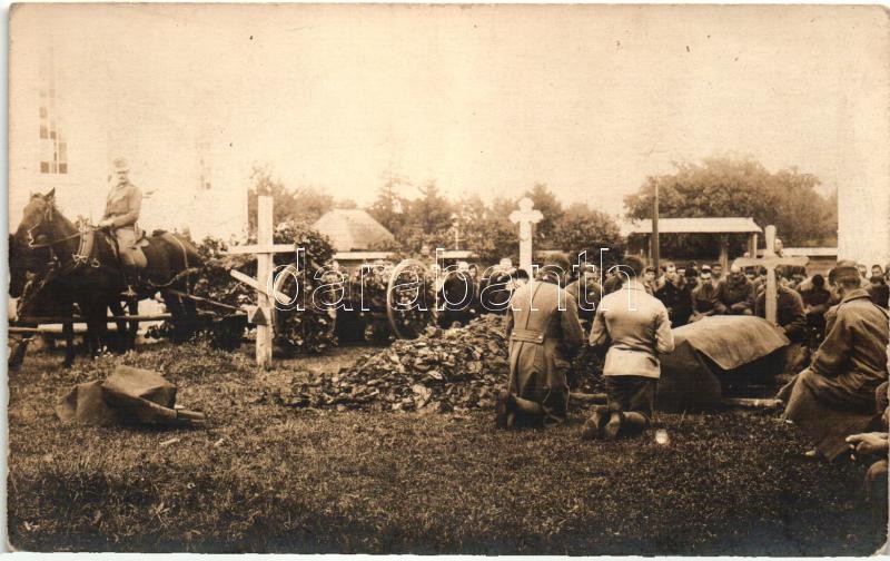 Katonai temetés, halottszállító lovaskocsi, gyászoló katonák / WWI Austro-Hungarian K.u.K. military funeral in the cemetery with hearse and mourning soldiers. photo