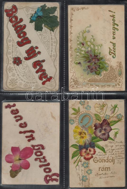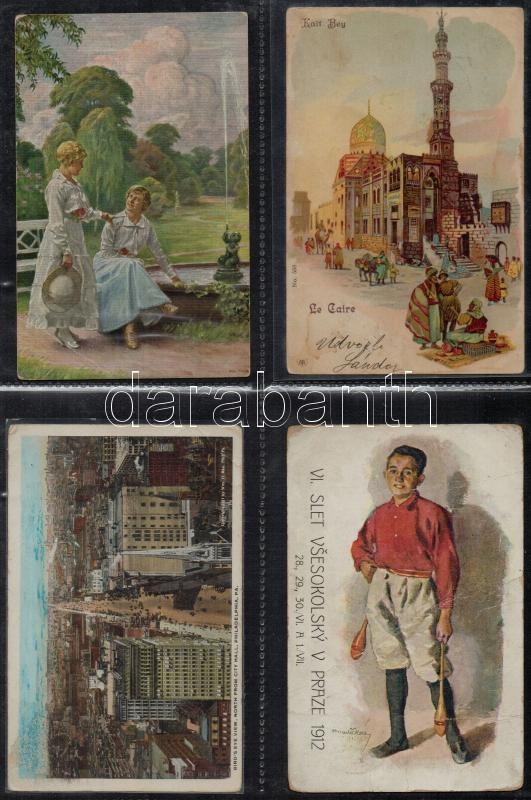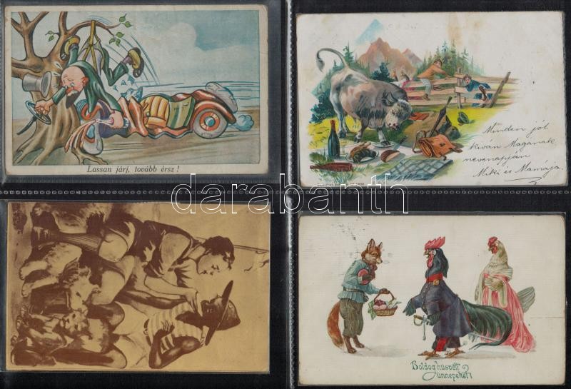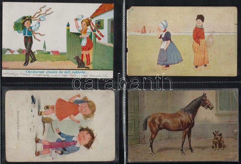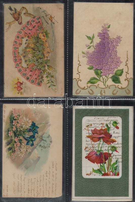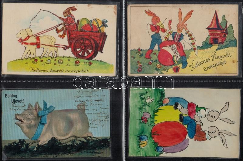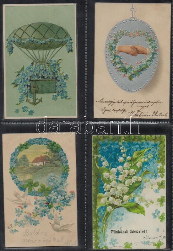 Gyűjtemény: üdvözlőlapok benne sok húsvéti, motívumok, kevés városkép, részben 50-es évek, közel 280 db, albumban. / Collection of greeting and thematic cards in album, about 280 pcs with a few topographic cards, partly 1950-es.