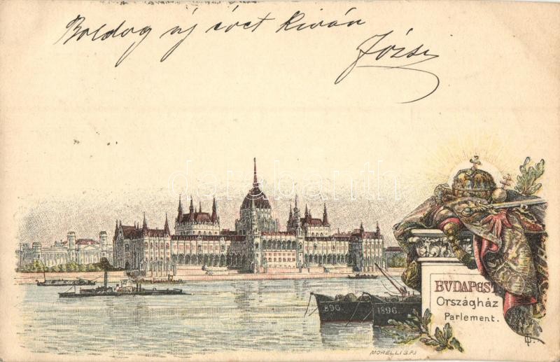 Leírás: 1899 Budapest V. Országház, parlament. Ezredéves Országos Kiállítás 2 Kr. Ga. s: Morelli
