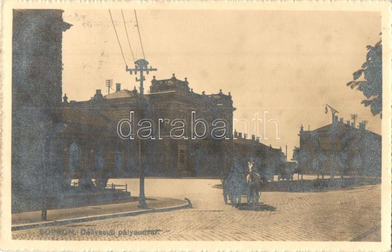 1913 Sopron, Délivasúti pályaudvar, vasútállomás, lovaskocsi , photo (... https://www.darabanth.com/hu/327-Gyorsarveres/327.0/Kepeslapok/Magyarorszag~1000006/1913-Sopron-Delivasuti-palyaudvar-vasutallomas-lovaskocsi-photo-EK~II1824397