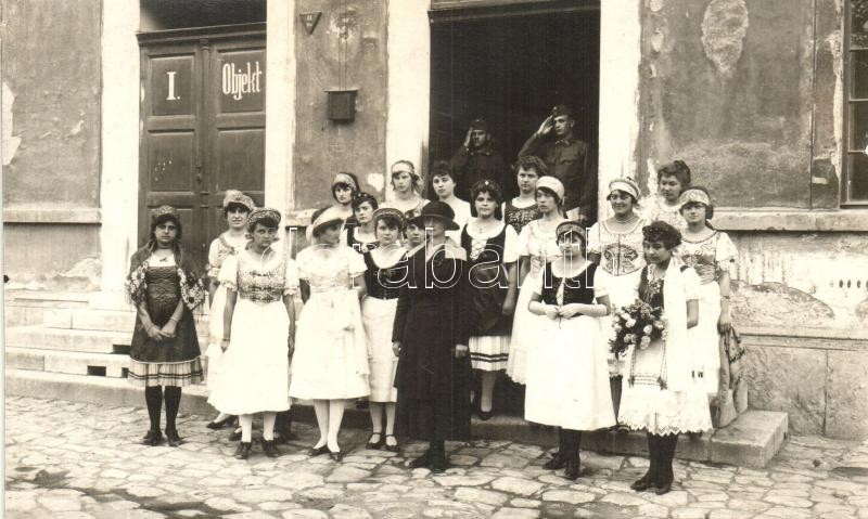 1921 Sopron, Női Ipariskola növendékei saját készítésű ruhában. Schäff... https://www.darabanth.com/hu/327-Gyorsarveres/327.0/Kepeslapok/Magyarorszag~1000006/1921-Sopron-Noi-Ipariskola-novendekei-sajat-keszitesu-ruhaban-Schaffer-Armin-photo-EK~II1824429