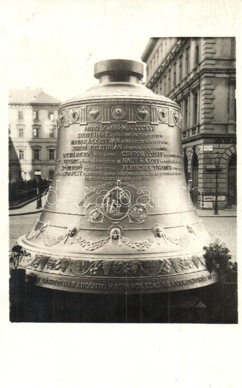 1930 Budapest V. Szent István tér, Szent István Bazilika, Szlezák László harangöntő mester Szent Imre herceg és a Hősök tiszteletére készült harangja és díszítései, a bazilika nagyharangja 1944-ig. Hubert Emma felvétele. photo