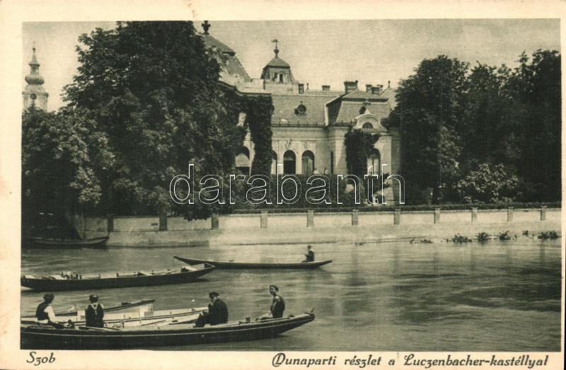 1930 Szob, Duna parti részlet, Luczenbacher kastély, evezősök https://www.darabanth.com/hu/327-Gyorsarveres/327.0/Kepeslapok/Magyarorszag~1000006/1930-Szob-Duna-parti-reszlet-Luczenbacher-kastely-evezosok~II1824458