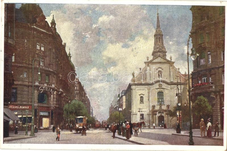 Budapest V. Ferenciek tere, művészlevelezőlap Hausner H. 7014/24 https://www.darabanth.com/hu/327-Gyorsarveres/327.0/Kepeslapok/Magyarorszag~1000006/Budapest-V-Ferenciek-tere-muveszlevelezolap-Hausner-H-701424~II1821413