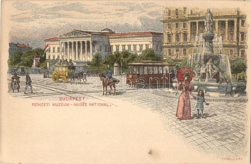 Leírás: Budapest VIII. Nemzeti Múzeum, villamos, Ezredéves Országos Kiállítás, piros 5kr Ga. s: Dörre Tivadar, Morelli