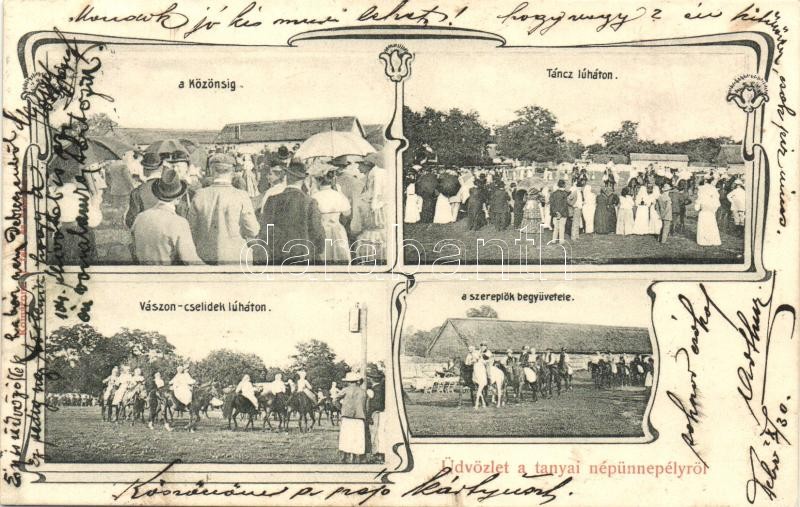 Leírás: Debrő, Feldebrő; Tanyai népünnepély. Komáromi J. felvétele és kiadása, floral Art Nouveau (EK)