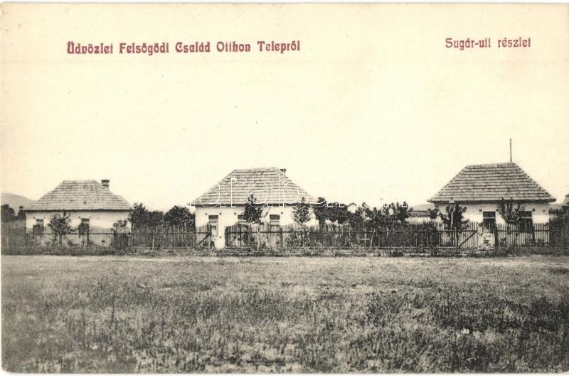 Leírás: Felsőgöd (Göd), Sugár út, Család Otthon Telep, telekeladási iroda reklámjával a hátoldalon (EK)