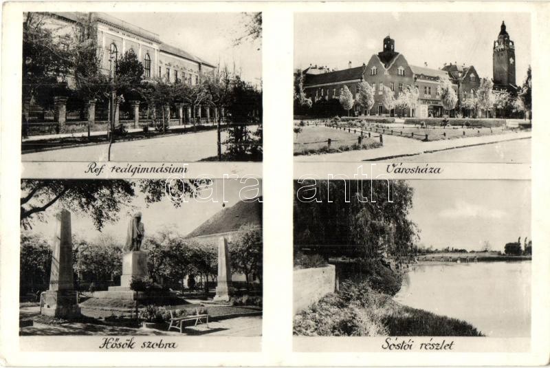 Leírás: Kiskunhalas, Református reálgimnázium, Városháza, Hősök szobra, Sóstó (EK)