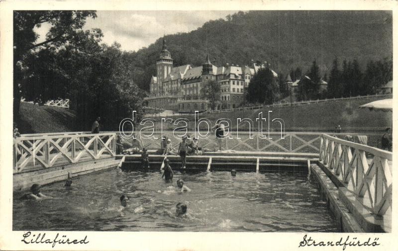 Lillafüred (Miskolc), Strand, fürdőzők, háttérben a Palotaszálló https://www.darabanth.com/hu/327-Gyorsarveres/327.0/Kepeslapok/Magyarorszag~1000006/Lillafured-Miskolc-Strand-furdozok-hatterben-a-Palotaszallo~II1824433