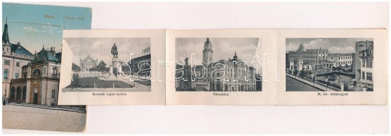 Leírás: Pécs, vasútállomás, pályaudvar. leporellolap belül az Irgalmas utcával és villamossal / leporellocard (Rb)