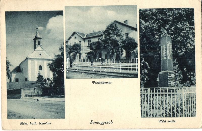 Leírás: Somogyszob, Római katolikus templom, Vasútállomás, Hősi emlékmű (Rb)