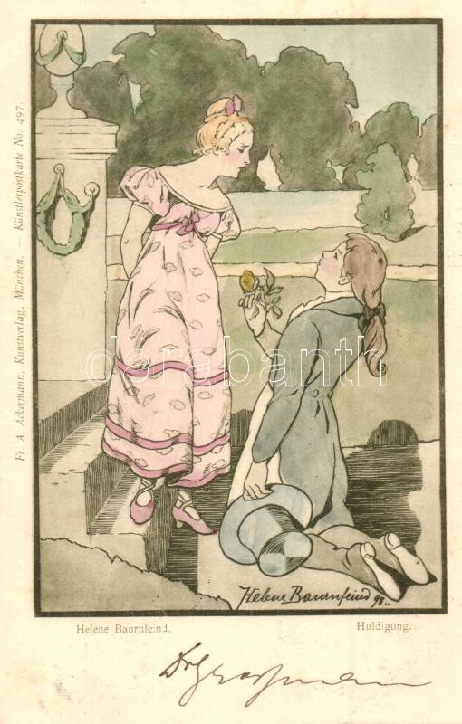 1898 Huldingung / courtship, art postcard, A. Ackermann Kunsverlag No.... https://www.darabanth.com/hu/327-Gyorsarveres/327.0/Kepeslapok/Muveszlapok~1000070/1898-Huldingung-courtship-art-postcard-A-Ackermann-Kunsverlag-No-497-s-Helene-Baurnfeind~II1821983