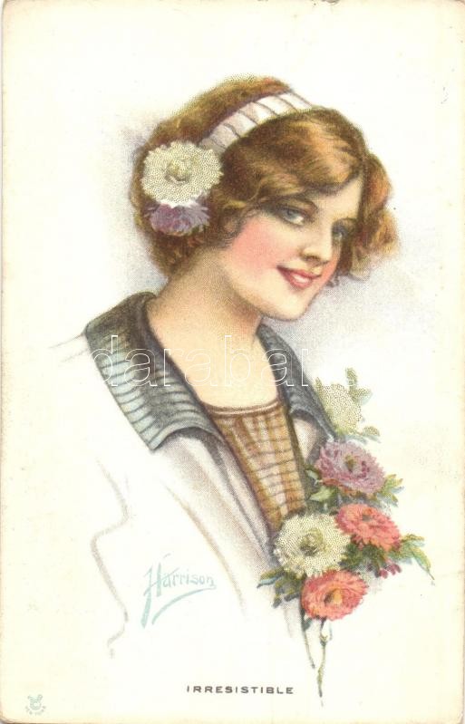 Irresistible, Lady with flowers, A.R. & C-i-B 525. s: Harrison https://www.darabanth.com/hu/327-Gyorsarveres/327.0/Kepeslapok/Muveszlapok~1000070/Irresistible-Lady-with-flowers-AR-C-i-B-525-s-Harrison~II1820317