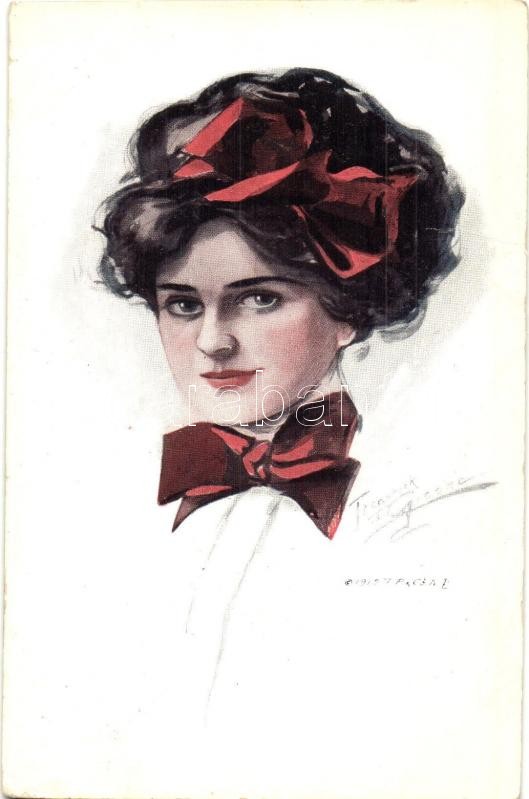 Lady with Red Bows, American Beauty Series 894. signed by artist https://www.darabanth.com/hu/327-Gyorsarveres/327.0/Kepeslapok/Muveszlapok~1000070/Lady-with-Red-Bows-American-Beauty-Series-894-signed-by-artist~II1820325
