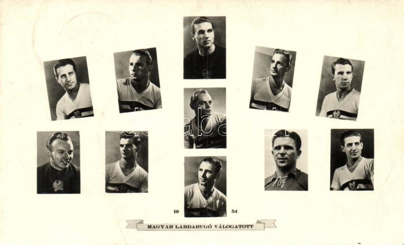 1954 Magyar Labdarúgó Válogatott (a világbajnokság vesztes csapata), Aranycsapat, Puskás, Grosics, Hidegkuti; Képzőművészeti Alap Kiadóvállalat / Hungarian national football team, Golden Team