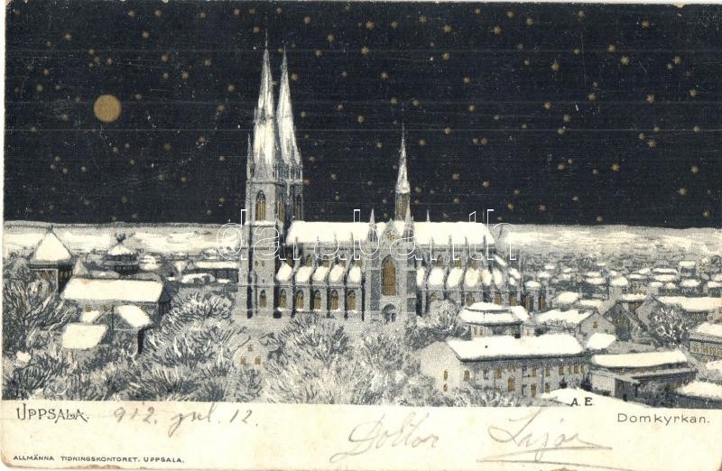 1912 Uppsala, Upsala; Domkyrkan / church, cathedral, winter at night (... https://www.darabanth.com/hu/327-Gyorsarveres/327.0/Kepeslapok/Svedorszag~1000042/1912-Uppsala-Upsala-Domkyrkan-church-cathedral-winter-at-night-fa~II1820249