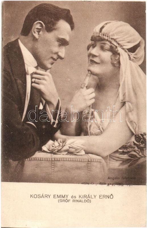 Kosáry Emmy és Király Ernő Angelo 'Gróf Rinaldó' felvétele, ... https://www.darabanth.com/hu/327-Gyorsarveres/327.0/Kepeslapok/Szinesz~1000076/Kosary-Emmy-es-Kiraly-Erno-Angelo-Grof-Rinaldo-felvetele-A-Szinhazi-Elet-kiadasa-B~II1818447