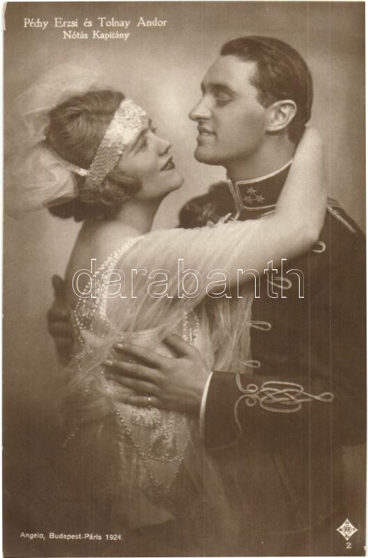 Péchy Erzsi és Tolnay Andor 'Nótás kapitány' Angelo, Budapes... https://www.darabanth.com/hu/327-Gyorsarveres/327.0/Kepeslapok/Szinesz~1000076/Pechy-Erzsi-es-Tolnay-Andor-Notas-kapitany-Angelo-Budapest-Paris-1924-Magyar-Rotophot-r-t~II1818471