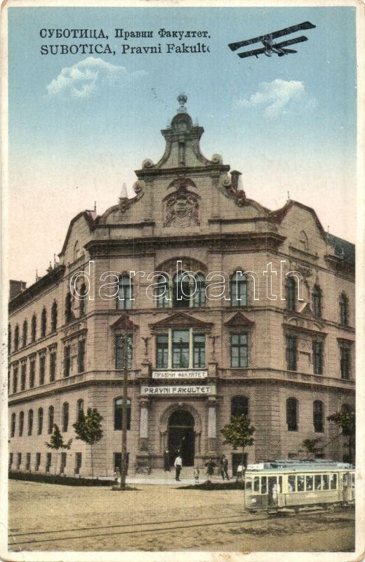 Szabadka, Subotica; Állam- és Jogtudományi Kar, villamos, repülőgép / ... https://www.darabanth.com/hu/327-Gyorsarveres/327.0/Kepeslapok/Vajdasag~1000011/Szabadka-Subotica-Allam-es-Jogtudomanyi-Kar-villamos-repulogep-Pravni-Fakultet-law-sc~II1820951