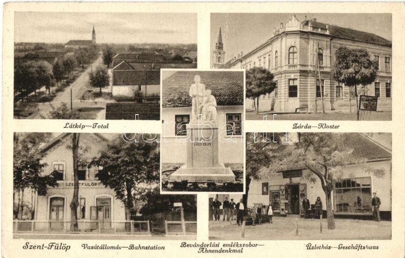Leírás: Szentfülöp, Backi Gracac; vasútállomás, zárda, Bevándorlási emlékszobor, üzletház, Franz Hauschka / railway station, nunnery, monument, shop (EK)