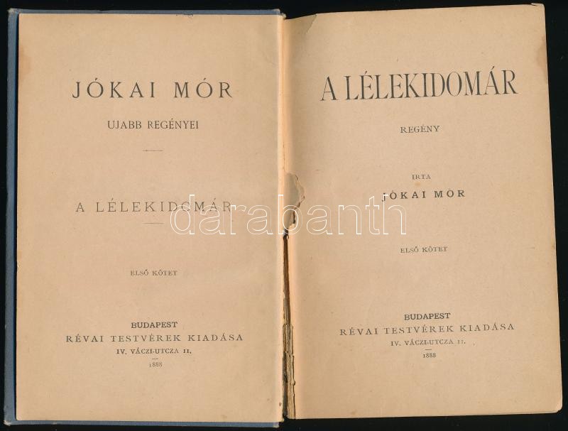 Jókai Mór: A lélekidomár. I. kötet. Bp., 1888, Révai. Kiadói aranyozott, festett, illusztrált egészvászon-kötés, Gottermayer N. kötés, kissé kopottas borítóval, pici sérüléssel a gerincen.