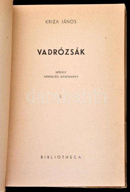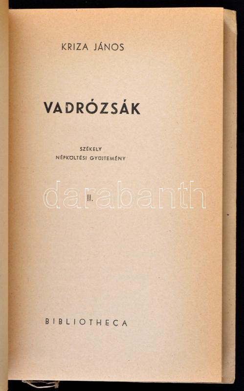 Kriza János: Vadrózsák I-III. kötet. Székely népköltési gyűjtemény. Viski Károly bevezető tanulmányával. Bp.,1943, Bibliotheca, XX+195+175+215 p. Kiadói papírkötés, a gerincen kis szakadással, folttal, jó állapotban.