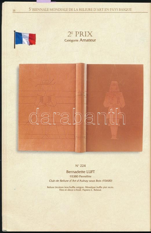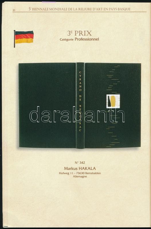 5th Biennale Mondiale de la Reliure d'Art en Pays Basque. "Cyrano de Bergerac" d'Edmond Rostand. Saint Jean-De-Luz, 1999, 'Biennales de la Reliure d'Art', 172+6 p. Francia nyelven. Kiadói papírkötés.